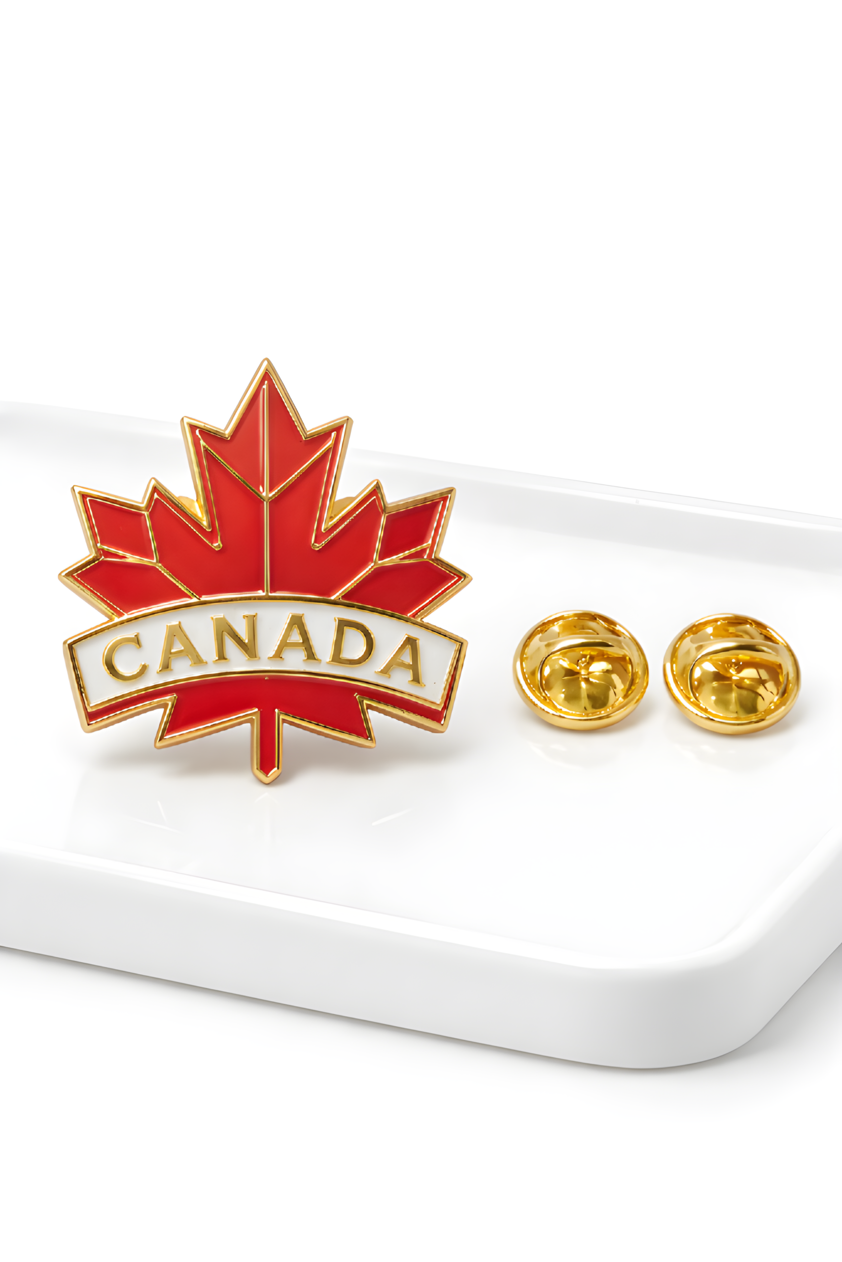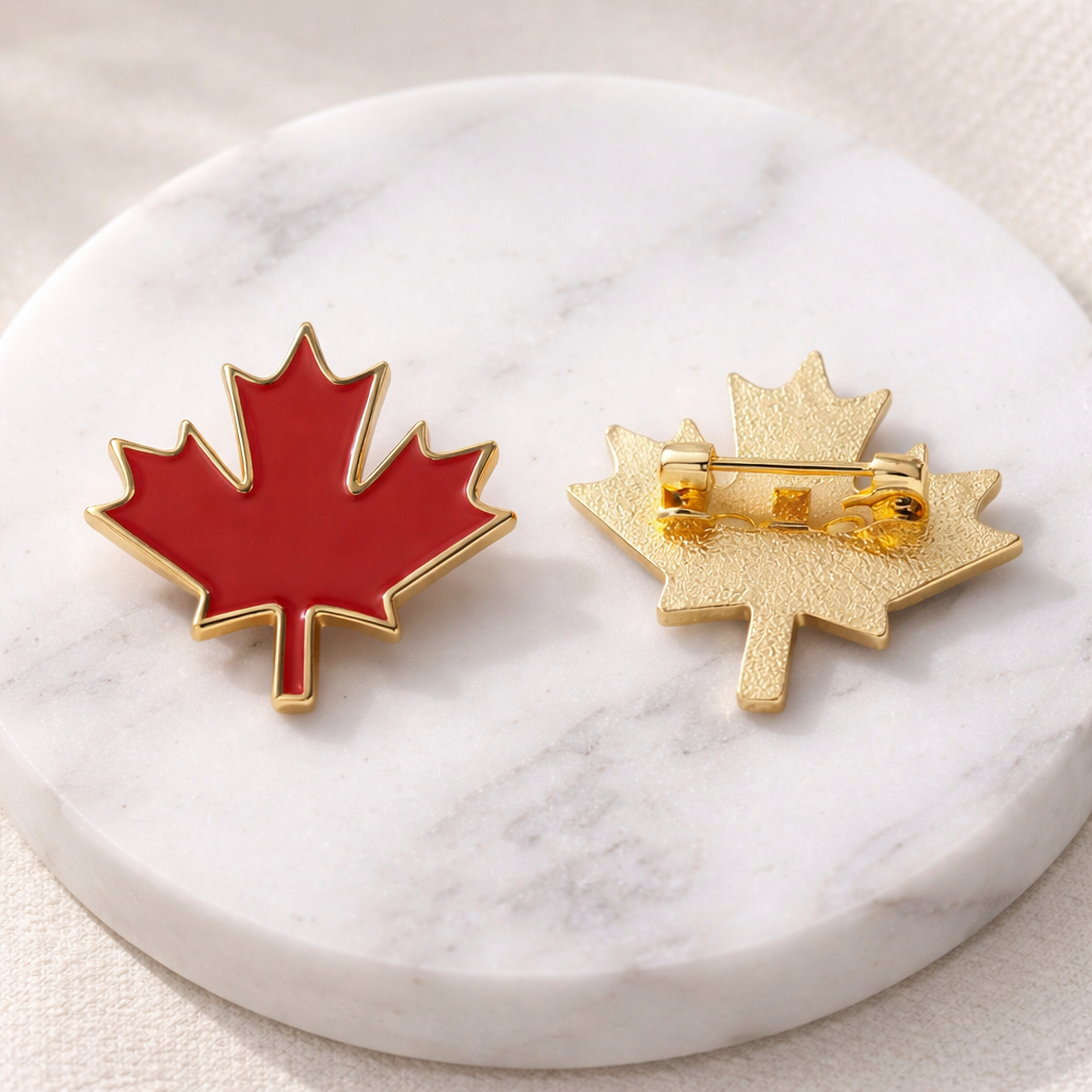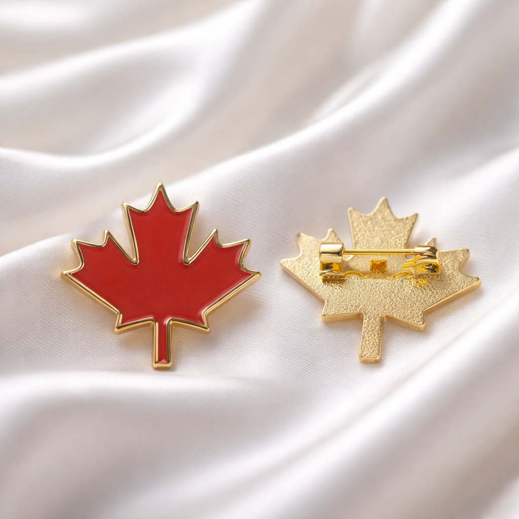 These high-quality enamel pins feature vibrant Canadian red and gold trim and are designed to proudly display your love for Canada.