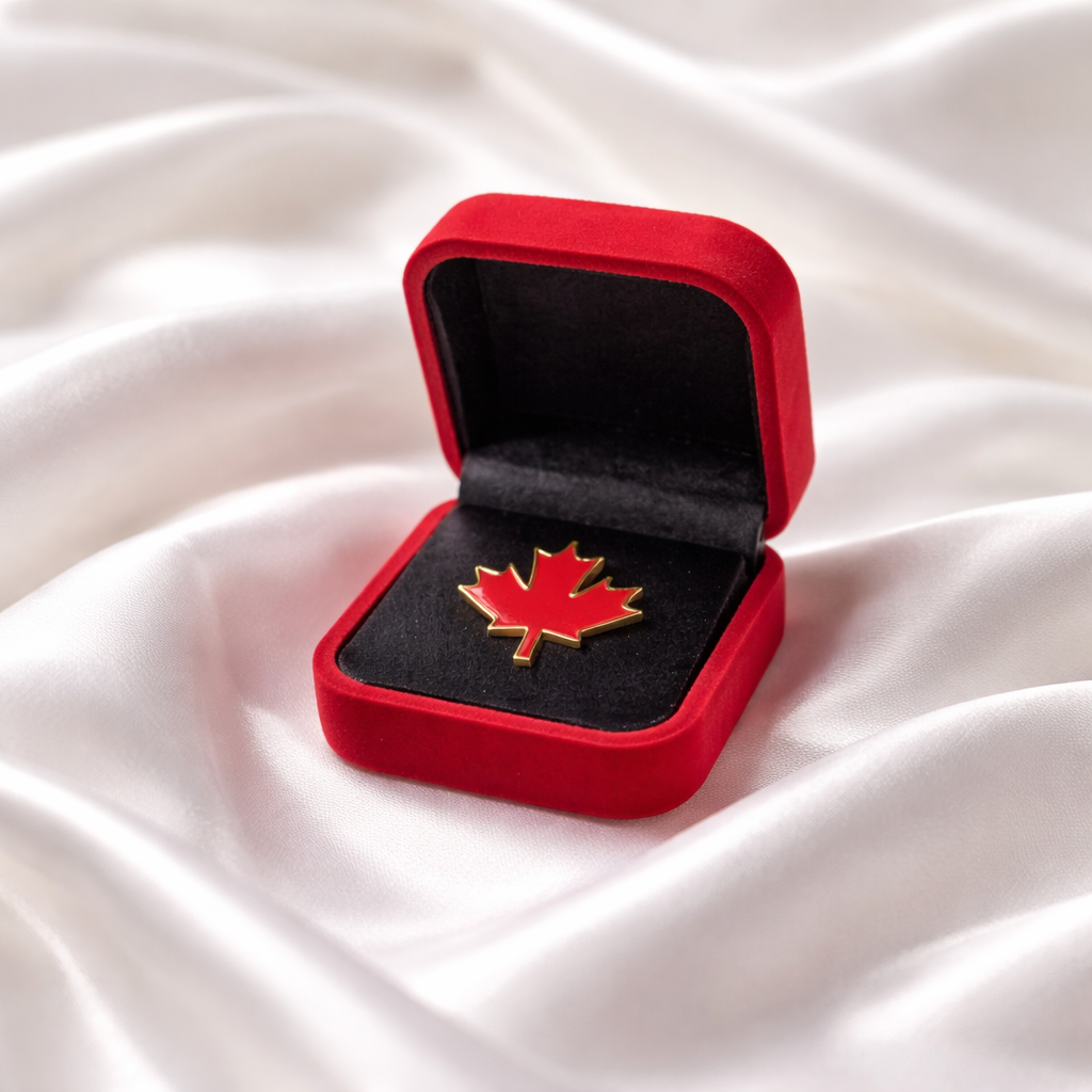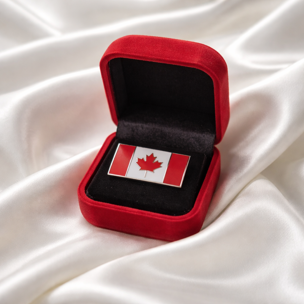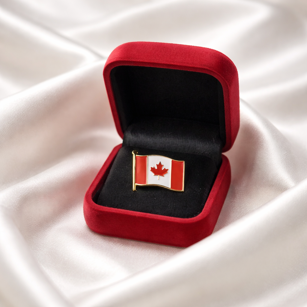 This beautiful set features four unique Canadian pin styles representing the iconic maple leaf and the Canadian flag. Each pin comes in its own jewellery box, making it perfect for collectors, gifts, and patriotic accessories.